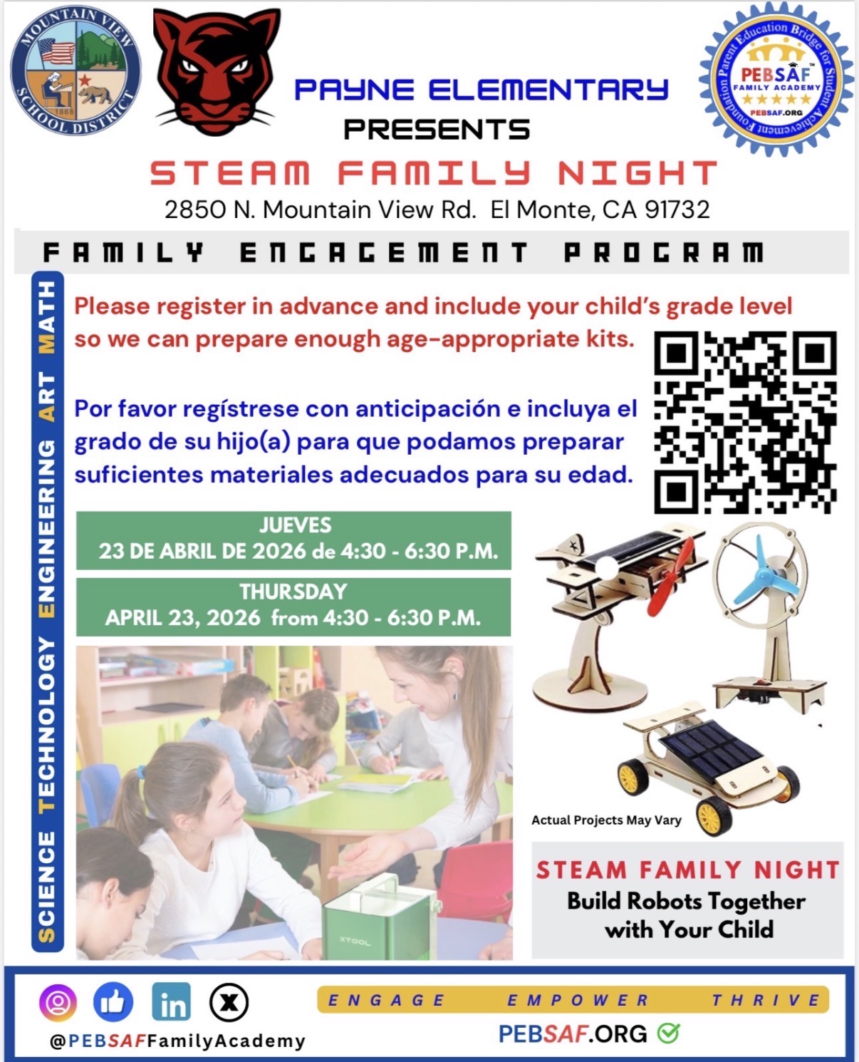 [Thursday, Apr 23 at 10:58 AM]Hello, Payne Families. Just a reminder that tonight is our STEAM Night! Please join us! With you child/children, you will make a robot! Every child in attendance will ...
